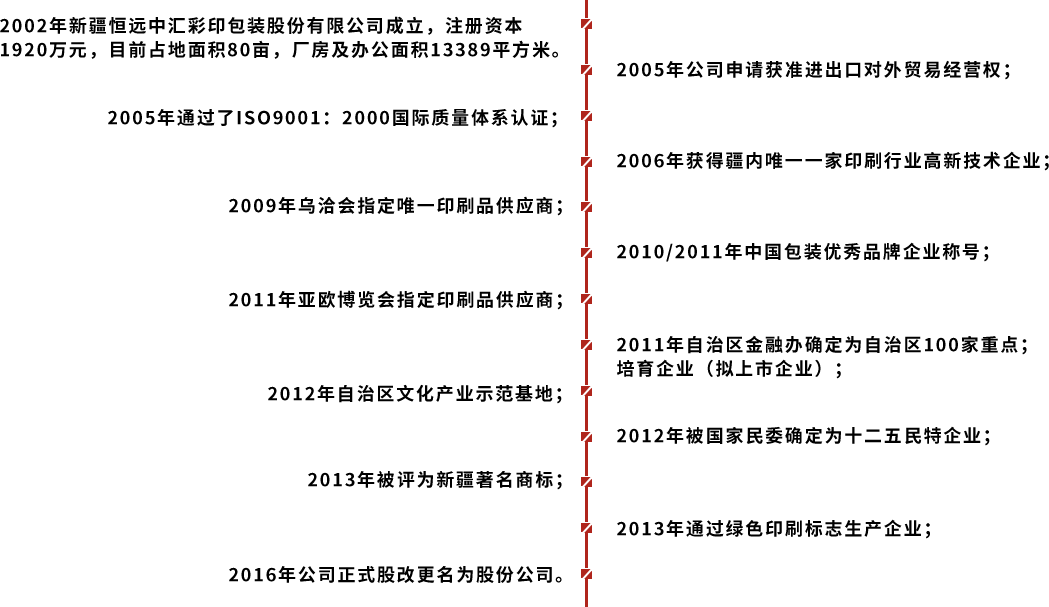 新疆恒遠(yuǎn)中匯彩印包裝股份有限公司成立于2002年7月,位于新疆烏魯木齊市高新區(qū)(新市區(qū))北工業(yè)園區(qū),為客戶提供品牌規(guī)劃、設(shè)計、印刷、包裝物制作的技術(shù)集成公司,整體綜合實力位居新疆包裝行業(yè)前列。目前公司占地約80.08畝,已建設(shè)完成接近2萬平方米的辦公樓、生產(chǎn)廠房、庫房及宿舍等基本設(shè)施。公司依托廣州深厚的印刷包裝技術(shù),引進(jìn)德國、意大利、瑞士等自動化高效設(shè)備幾十臺,工序配置齊全,自主設(shè)計研發(fā)項目獲得十幾項專利,使企業(yè)更具有較強(qiáng)市場競爭力,為優(yōu)質(zhì)企業(yè)提供品質(zhì)優(yōu)良的包裝,讓新疆產(chǎn)品走出新疆,走向國內(nèi)、國際市場。目前為止公司擁有西北地區(qū)的環(huán)保水印印刷機(jī),逐步形成擴(kuò)大了公司的龍頭企業(yè)的區(qū)域范圍。2017年積極響應(yīng)國家產(chǎn)業(yè)援疆戰(zhàn)略,新設(shè)阿克蘇子公司,集合世界先進(jìn)的包裝技術(shù),服務(wù)南疆特色林果業(yè),輻射南疆(和田、喀什、庫爾勒等)各區(qū)域;